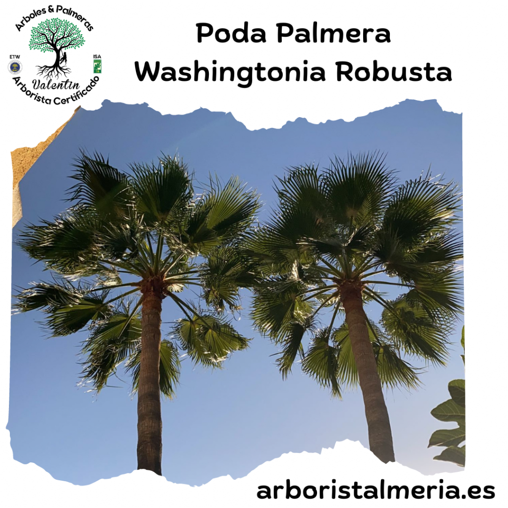 Poda de Palmeras Whasingtonia Robustas y Phoenix Dactyliferas en la comunidad Villa Africa de Aguadulce, Almeria.