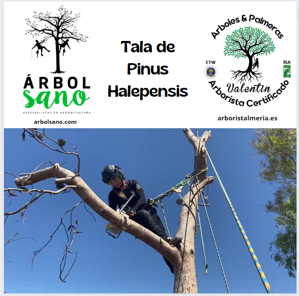 Trabajo de tala de Pinus Halepensis con la empresa Arbol Sano ( https://arbolsano.com )