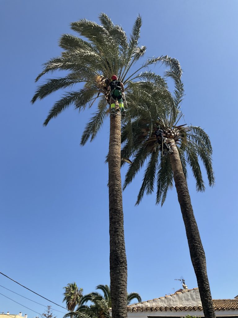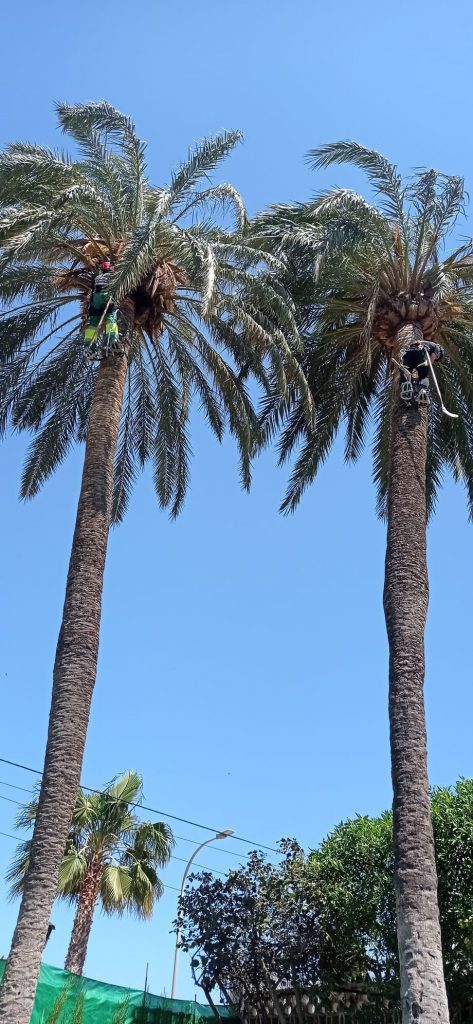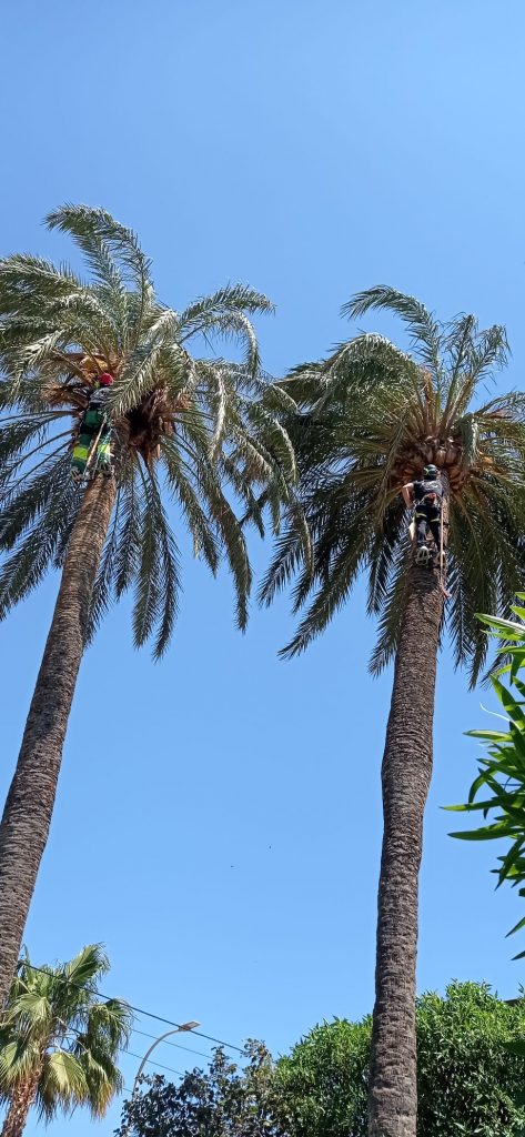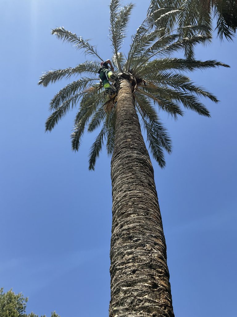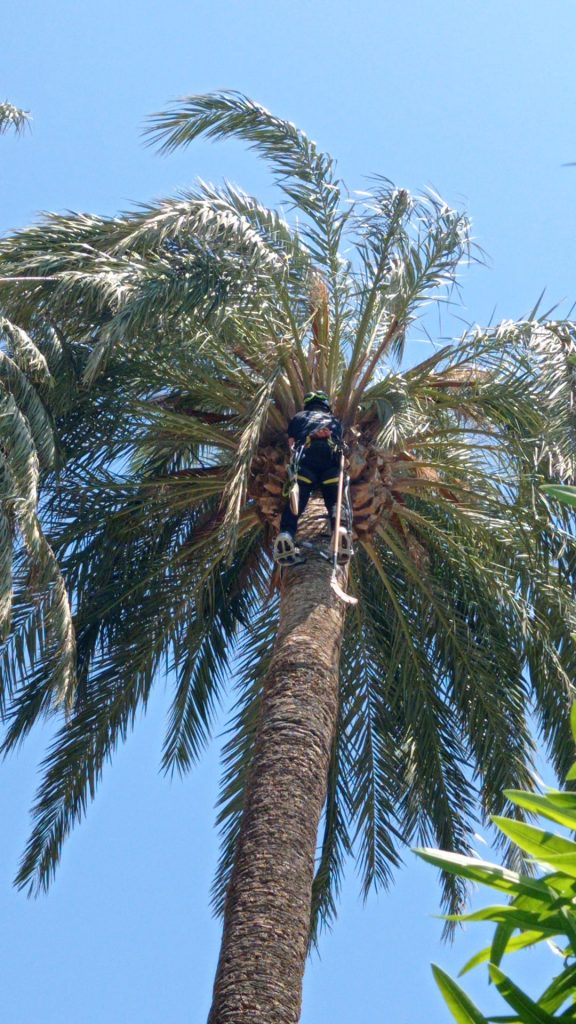 Limpieza de palmera Robusta Phoenix Dactylifera.