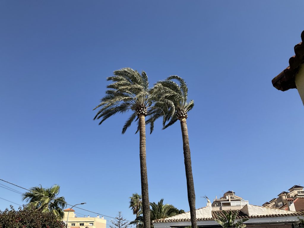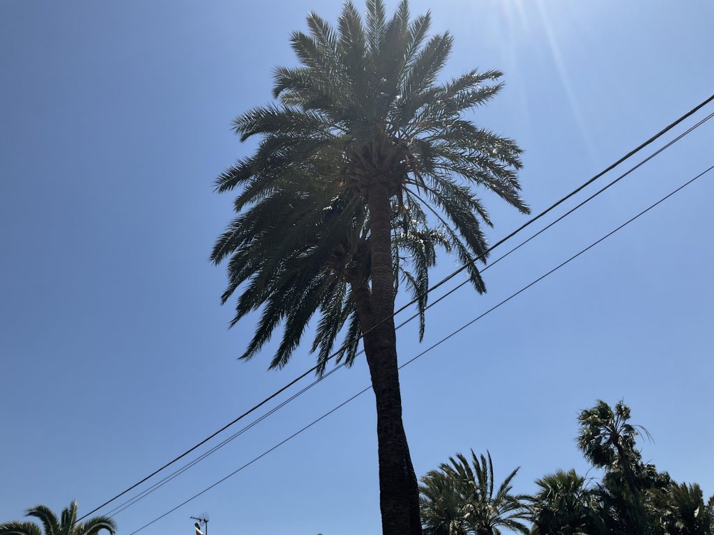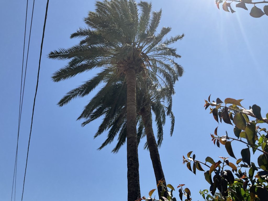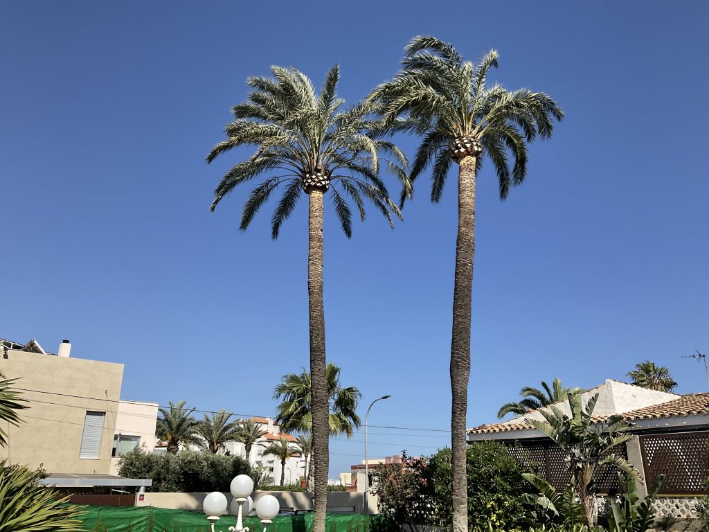 Limpieza de palmera Robusta Phoenix Dactylifera.